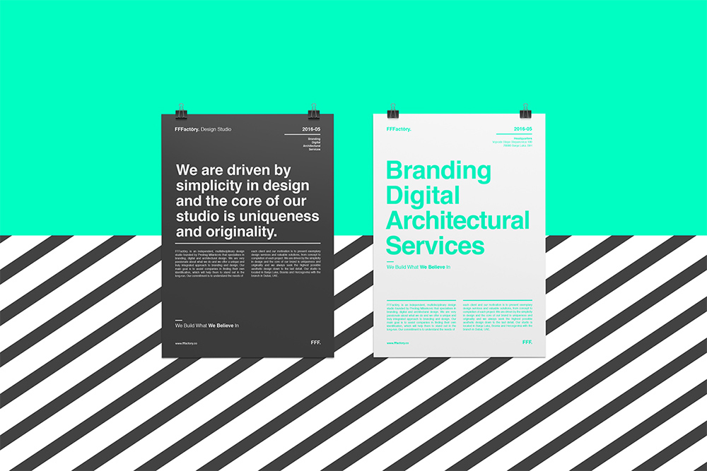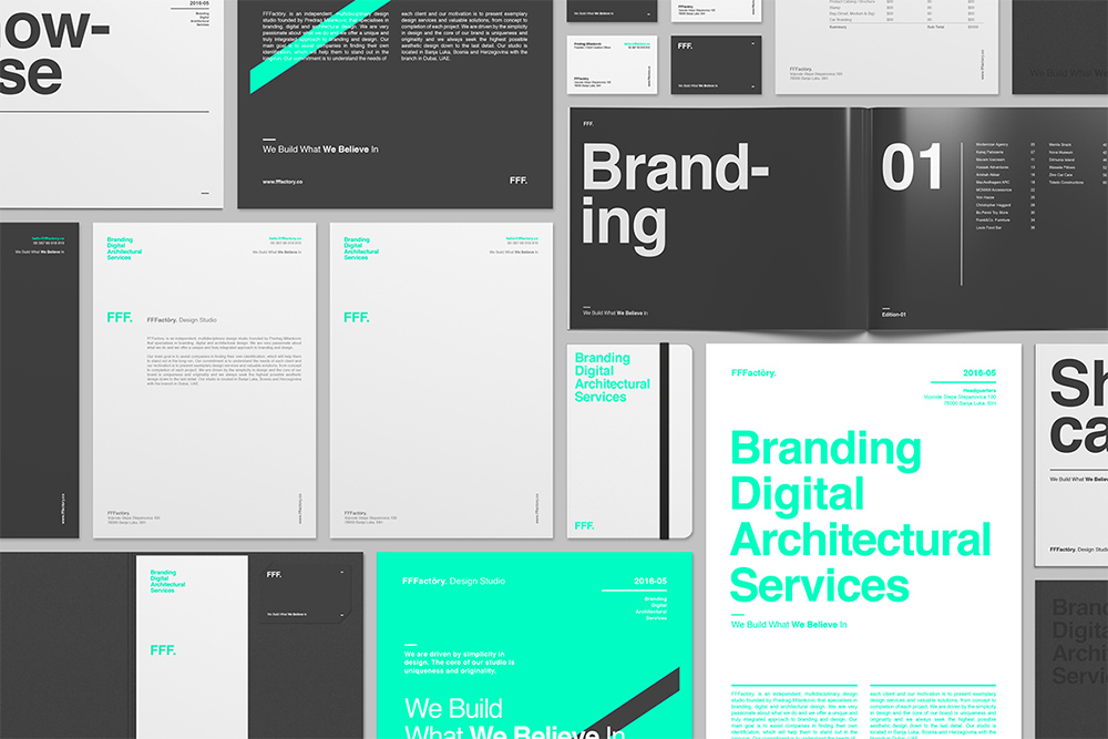 FFFactōry. is an independent, multidisciplinary design studio founded by Predrag Milankovic that specialises in branding, digital and architectural design. We are very passionate about what we do and we offer a unique and truly integrated approach to branding and design. Our main goal is to assist companies in finding their own identification, which will help them to stand out in the long-run.
